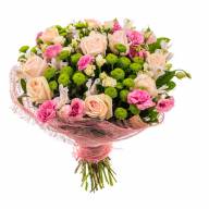 Изысканный и невероятно привлекательный букет состоит из множества разнообразных цветов. Теплота и нежная красота хризантем позволит вам с помощью этой цветочной композиции подчеркнуть свое уважение. Использование при создании букета роз в сочетании с необычными и яркими альстромериями, символизирующими дружеское расположение и удачу в жизни, создает невероятный микс, способный порадовать и принести множество положительных эмоций получателю, а также станет отличным способом выразить свои глубочайшие извинения перед дорогим человеком.
