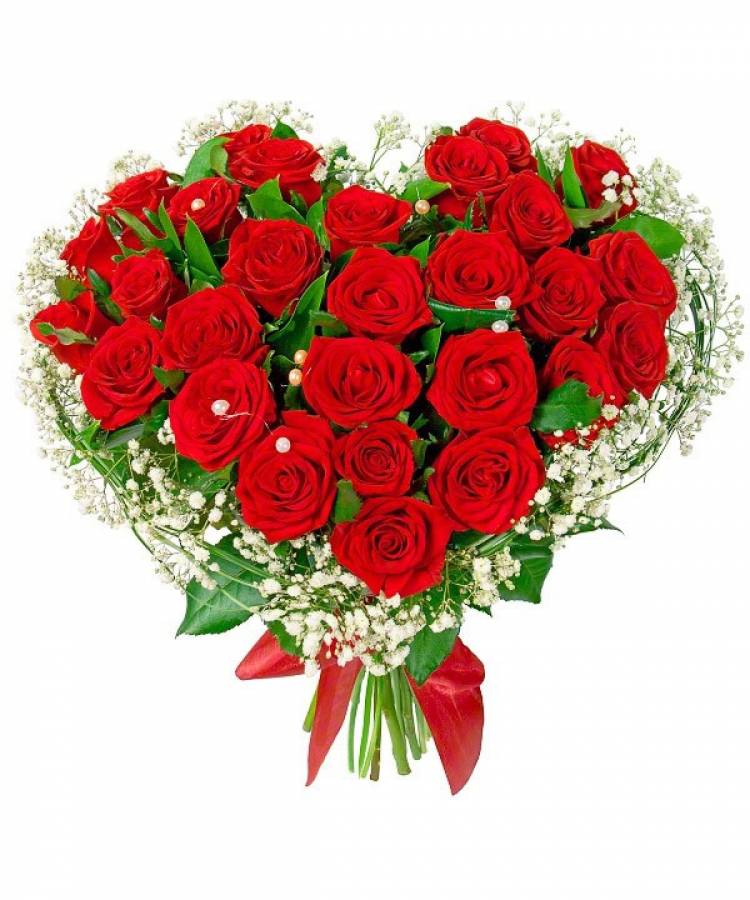 Готовите незабываемый вечер для любимого человека? Букет из благородных алых роз в форме аккуратного сердца станет роскошным украшением интерьера и приятным дополнением к основному подарку. Флористам удалось создать удивительную гармонию между насыщенными красными бутонами и контрастными зелеными листьями. Легкую игривость и элегантность композиции придают мелкие снежинки в виде деликатных белоснежных гипсофил. Такой букет наверняка не оставит вашу половинку равнодушной и надолго окутает её волшебным цветочным ароматом, навевающим только положительные эмоции и сладкие воспоминания.